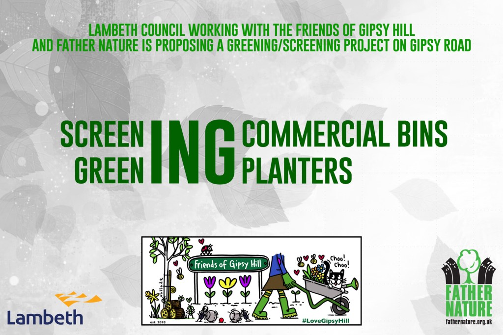 With the support of local Businesses, we’ve been working in collaboration with Lambeth Council and Father Nature to find ways we can improve the general streetscape, to support local traders, add even more greenery and to find a way to hide those pesky commercial bins!