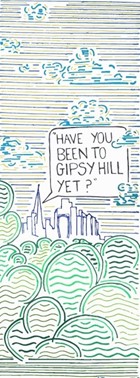 I’m Rosa aged 9 and lived here all my life! I’ve drawn the hill, trees, church and Fanny the Cat. All important things connected to Gipsy Hill.