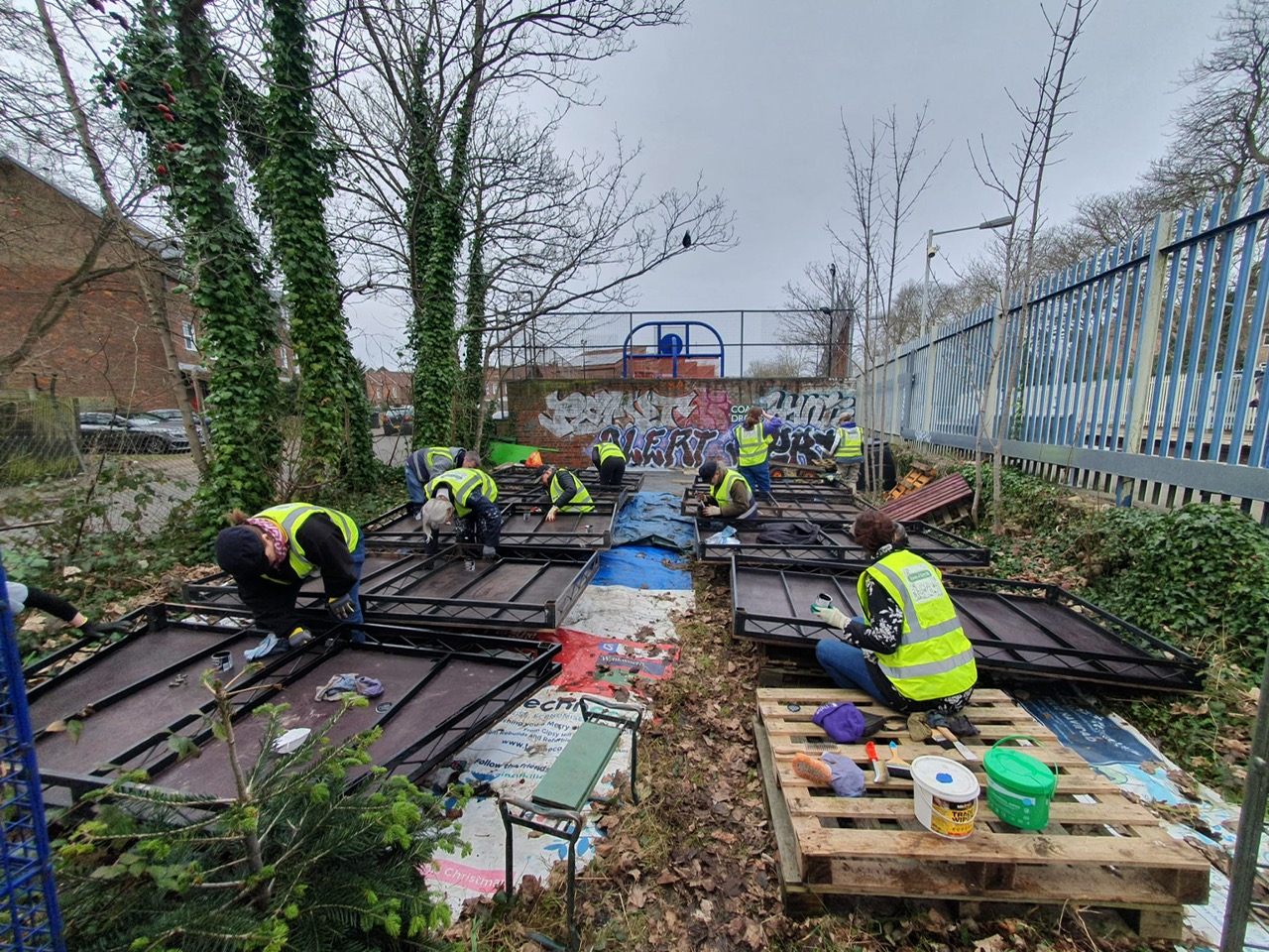 We kicked the year off installing a stage in the Gipsy Hill Station ‘Coal Drop’ Garden. After salvaging the original risers from the Crystal Palace Bowl stage, a team of volunteers scrubbed down the frames to remove the dirt and rust before refreshing them with a new lick of paint. After a busy and tiring February weekend the new stage was installed and ready for performers!