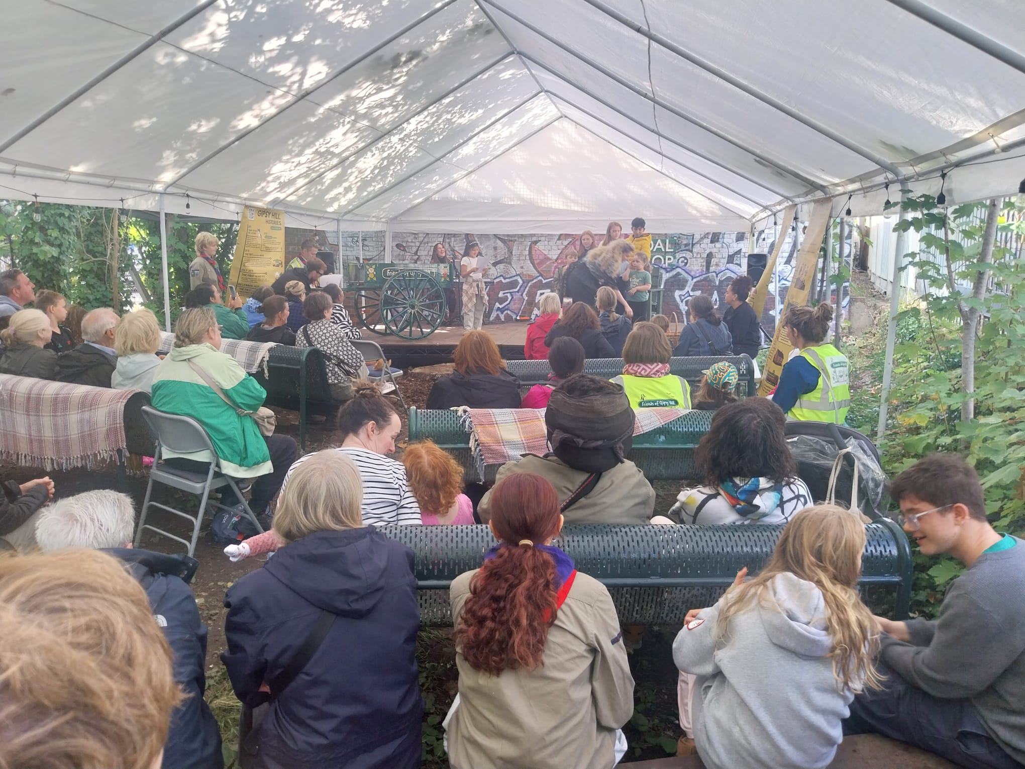 In September the refurbed boards of the new Coal Drop Yard stage were graced once again, this time as part of Friends of Gipsy Hill Garden Party. In the Buffer Stop & Sidings Garden the local scouts hosted classic fete games and ran a cake stall, all raising money for their upcoming trip to Gambia, and there were crafts and planting workshops. On the Coal Drop Yard stage the afternoon kicked off with music from Kate Proudlove, followed by stories and history of the area and a staging of The Norwood Gypsies play, with SE19’s favourite local DJ Tunji playing old school tunes to close the party. The day was part of the Railway 200 celebration event, marking 200 years since the opening of the modern railway, with support from the Mayor of London’s Community Weekend.